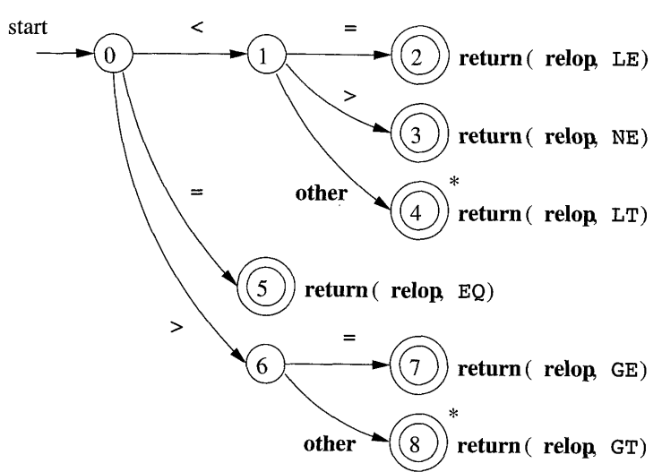 35 class scanner{ static const int N=200000; public: 36 symboleTable smt; 37 char buffer[N]; int begin,end,lineno,pos; 38 scanner(const char *fileName="pr1.c"){ 39 ifstream f1(fileName); 40 if(!f1){cout<<"file"; throw 0;} 41 f1.seekg(0,ios::end); long long t1=f1.tellg(); f1.seekg(0,ios::beg); 42 f1.read(buffer,t1); f1.close(); begin=end=lineno=pos=0; 43 } 44 Token getToken(void){Token t; 45 for(;buffer[begin]==' ' || buffer[begin]=='\n'|| buffer[begin]=='\t'; begin++) 46 if(buffer[begin]=='\n') lineno++; 47 end=begin; 48 if(isalpha(buffer[begin]) || buffer[begin]=='_'){ end ++; 49 while(isalnum(buffer[end]) || buffer[end]=='_') end++; 50 end--; t.str=smt.search(buffer, begin, end, t.t); 51 } // cout<< buffer[begin] << " ::: " << buffer[end] << endl; 52 else if(isdigit(buffer[begin])){cout << " Unexpected numeric input: "; throw 1; } 53 else if(buffer[begin]=='"'){cout << " Unexpected quotation mark input: "; throw 1;} 54 else 55 switch(buffer[begin]){ 56 case '<': 57 end++; 58 if(buffer[end]=='=') t.t=LE; 59 else{end--;t.t=LT;} 60 break; 61 case '=': end++; t.t=ASG; break; 62 case 0 : t.t = END_INPUT; break; 63 default: cout << " Unexpected quotation mark input: "; throw 1; 64 } 65 pos=begin; if(t.t != END_INPUT) begin=++end; return t; 66 } 67 }; 68 int main(){Token t1;scanner s1;t1=s1.getToken(); 69 while(t1.t != END_INPUT){t1.print(); t1=s1.getToken();} 70 s1.smt.print(); 71 }