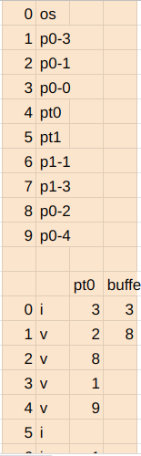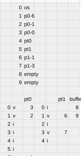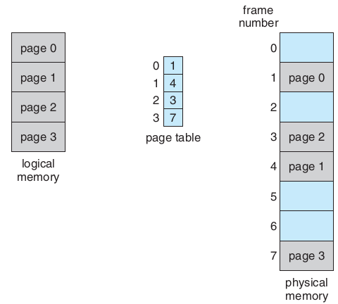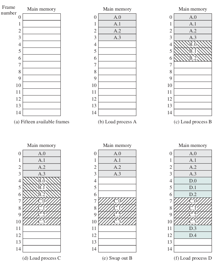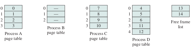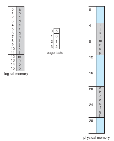یک کامپیوتر با حافظهٔ ۳۲ بایت و اندازههای قاب ۸ بایتی و یک فرآیند