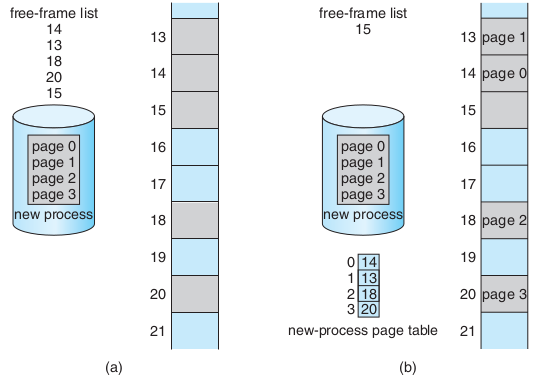 تغییرات فضاهای آزاد پیش و پس از تخصیص حافظه به یک فرآیند