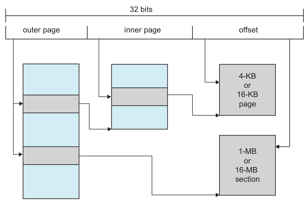 مانند صفحهبندی دو سطحی با این تفاوت که در سطح یکم قطعهبندی انجام میشود و در سطح دوم صفحهبندی انجام میشود.